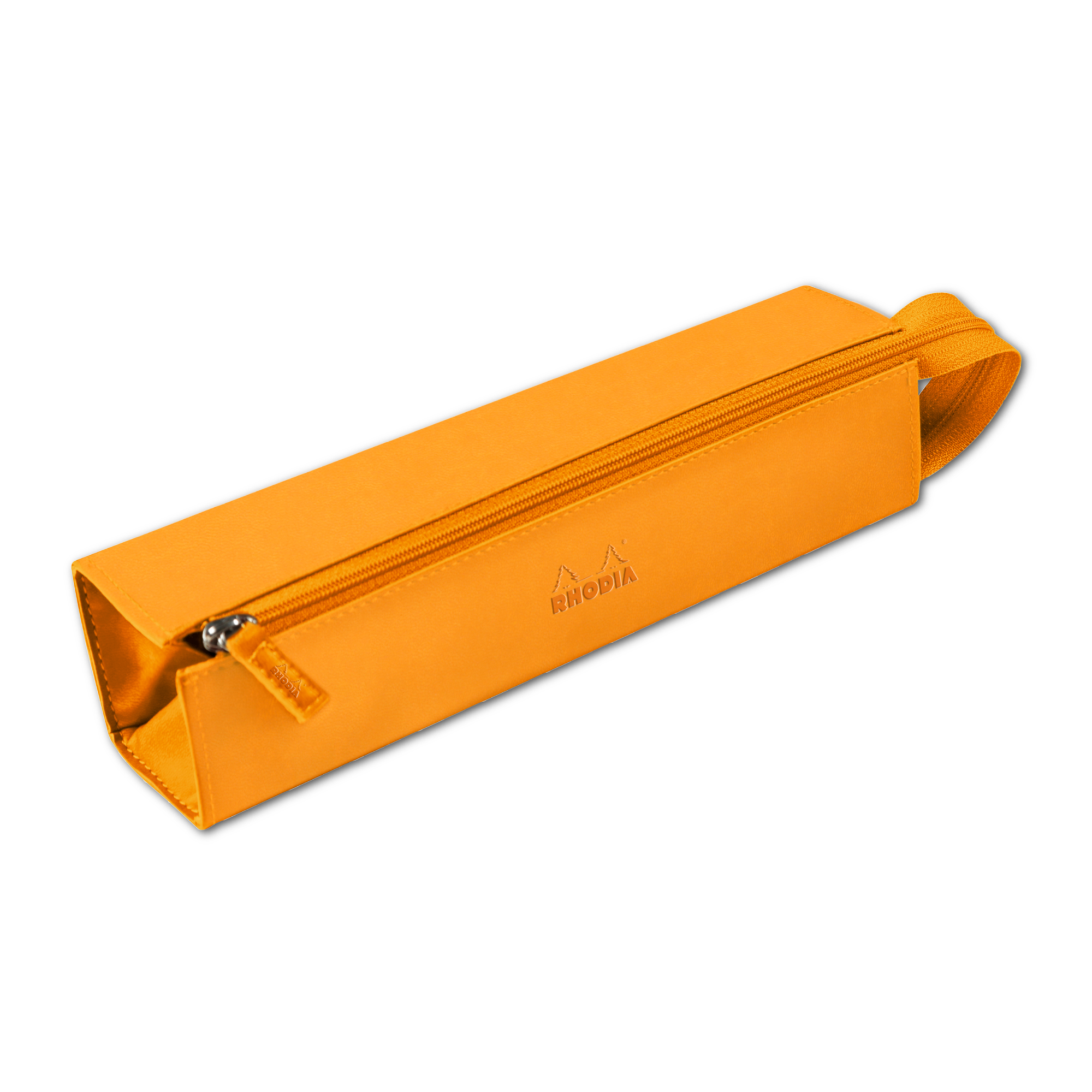 A stylish way to travel with your essential writing instruments from Rhodia. Soft, faux leather in six yummy colors, this pencil box zips open wide for easy access when the writing or drawing bug hits! Each features iconic "Rhodia orange" lining and a debossed logo on the side. Size: Approx. 9x2x2"