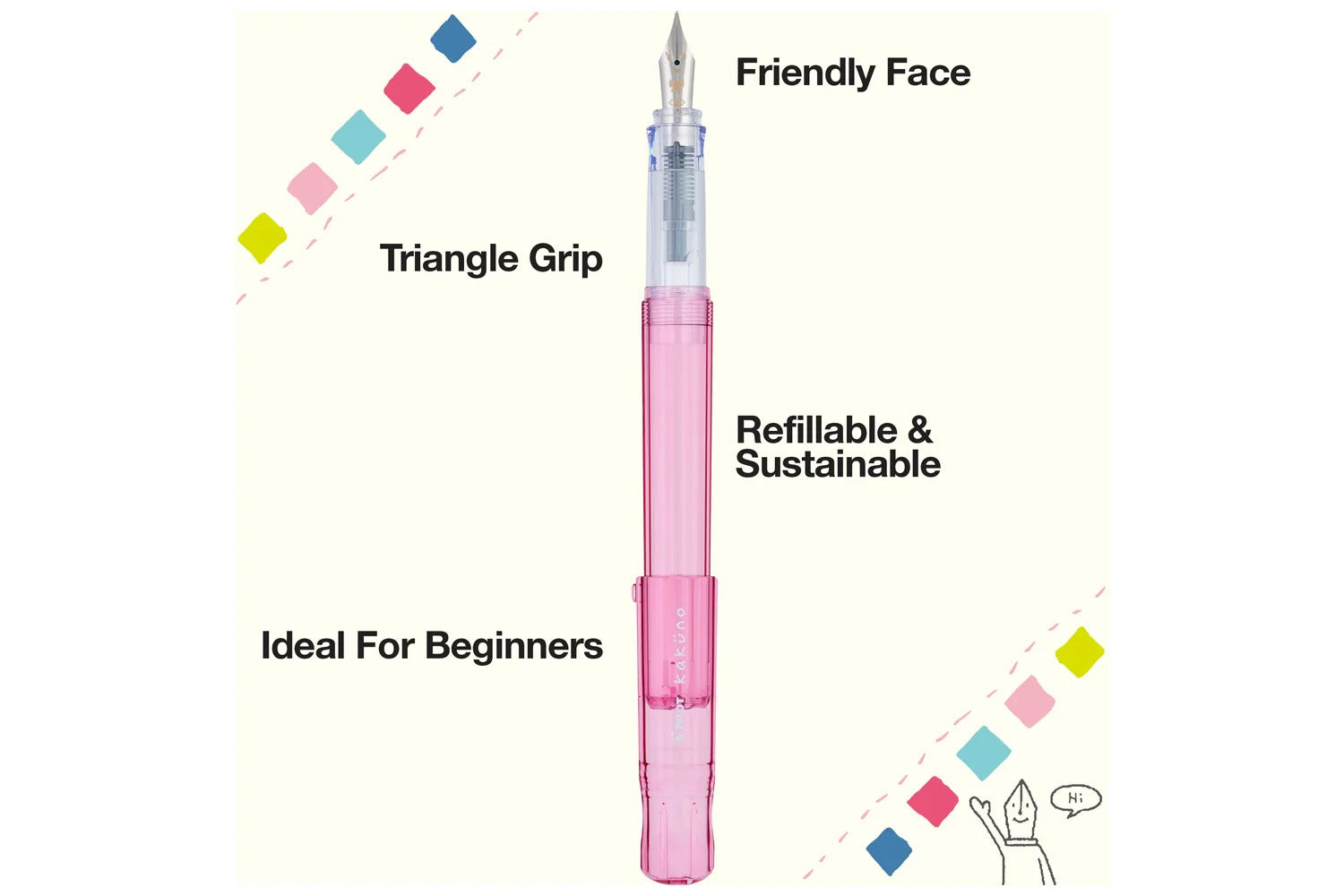 Bright, cheerful, and smooth to write with — the Pilot Kakuno Fountain Pen in Pink is perfect for beginners and everyday writers alike. Its playful design and high-quality Japanese craftsmanship make handwriting feel effortless and fun.